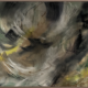 woven through with deep black and burgundy lines. The rich lines pulse beneath the surface, like